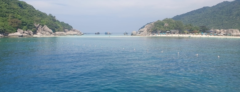 Le bateau nous emmènera près de la minuscule île de Koh Nang Yuan, il s'agit en fait de 2 îlots reliés par un cordon de sable blanc. Décor magnifique !