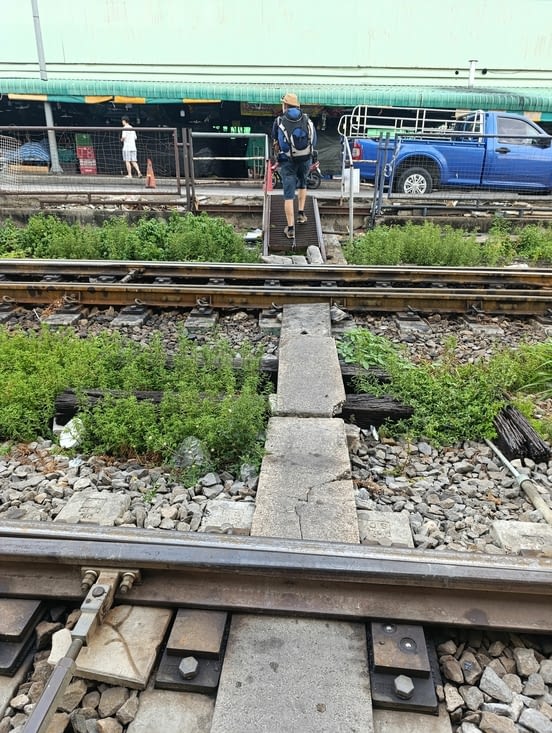 Nous entamons la dernière,partie de notre voyage. Retour vers Bangkok. De nouveau dans un chenillard bondé. En face de nous une femme d’une soixantaine d’années accompagne deux jeunes enfants. Une fillette d’un dizaine d’année et un garçon d’environ 6 ans. Quelques larmes s’échappent des yeux de la petite. Sa mère ? Sur le quai a également les yeux mouillés. Elle porte un bébé dans les bras. Durant tout le voyage, les deux enfants ne sortirons pas un mots. Enfermé dans un mutisme, nous sommes songeur quand à leur destinée. Nous arrivons à échanger quelques mots avec la dame qui nous partage son déjeuner, de tranches de papaye verte trempées dans une sauce de poissons fermenté. Gloups , et vous n avez pas l'odeur… Nat ne trempera pas sa papaye .....