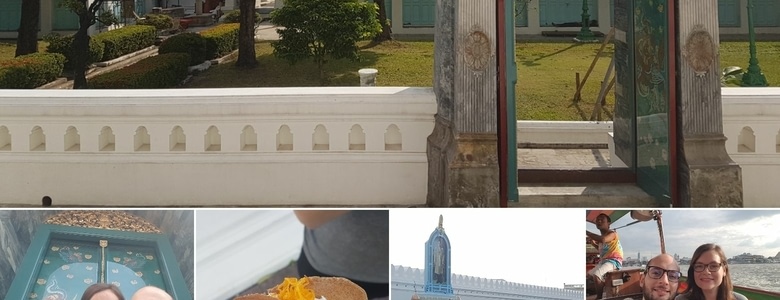 Ensuite tentative de visite du Grand Palais Royal mais on arrive trop tard (ferment + tôt à cause du nouvel an). A la place on fait 1h de bateau rapide aux alentours de bangkok, un peu trop touristique. Après on prend un verre au Navy Club devant un magnifque couché de soleil, Claire a pris un délicieux smoothie Mangue (payé 90 Bahts soit 2 euros) et moi un lemon tea / thé au citron (payé 60 Baths). Nous voulions rentrer à l’hôtel après cela mais nous avons essuyé plusieurs refus de TucTuc donc sommes restés vers le palais royal.