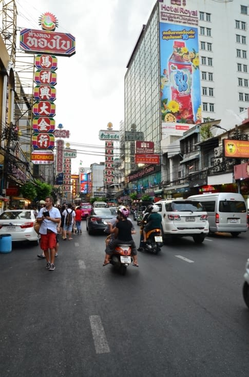 Et là, c’est juste la folie, un monde de dingue : des voitures, Tuktuk, bus, scooter à gogo ; d’énormes enseignes accrochées aux immeubles qui n’ont rien à envier à Shanghai (bon ok on a encore jamais visité Shanghai !) et d’innombrables petits boui boui qui font à manger sur les trottoirs ! Ça nous a scotché ! ?