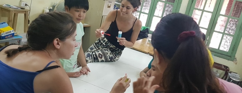 Nous débutons notre journée par deux de nos prises en charge individuelles habituelles : Tuan Anh et ses problèmes de prononciation, et le petit Tuan Linh et ses difficultés de graphisme. Jusqu'à présent, Tuan Linh nous posait quelques difficultés car nous n'avons pas eu de cours théoriques sur la rééducation des troubles graphiques. Une amie de Solène nous a donc donné des pistes de travail durant le week-end et nous avons pu les mettre en pratique ce jour ! C'était très intéressant, merci Clara !