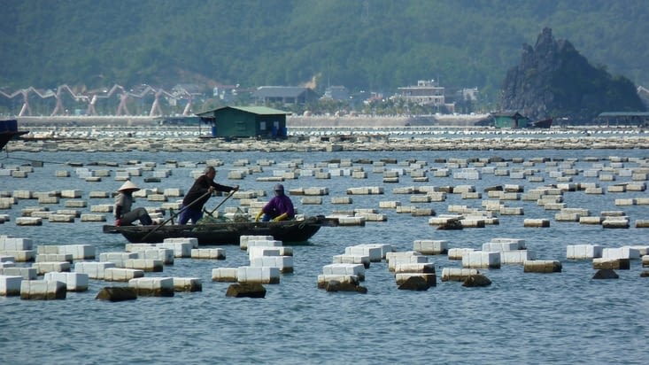 Une des économies des baies d'Halong et Tulong, en dehors du tourisme, est l'élevage des huitres perlières.