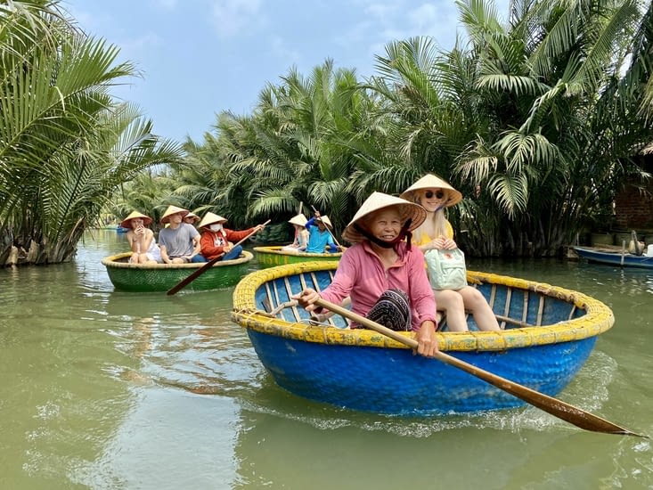 Après ce délicieux repas, nous sommes raccompagnés à notre hôtel pour une sieste digestive bienvenue. Une bonne heure plus tard, nous partons explorer en vélo les rizières aux portes de Hoi An. Dans un air embaumant le riz, nous croisons plusieurs cultivateurs au travail ainsi que des buffles assistant les hommes dans les différentes exploitations.