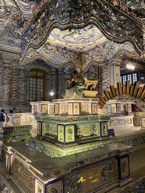 La matinée débute avec une visite guidée en français de deux tombeaux impériaux, ceux de Khai Dinh et Minh Mang (12e et 2e empereurs de la dynastie).