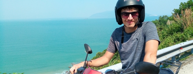 Pour se rendre à Hue, nous avons choisi de suivre le conseil de Mike que nous avions rencontré à Ayutthaya, et avons fait le trajet depuis Hoi An en moto. Nous avons trouvé une agence qui proposait la location de moto et le transport de nos gros sacs à dos jusqu'à Hue pour une vingtaine de dollars à deux. Le trajet d'environ 130km nous a pris la journée en comptant tout un tas d'arrêts, à des grottes, cols, points d'observations et cascades. Un super trajet qu'on est contents d'avoir fait en moto !